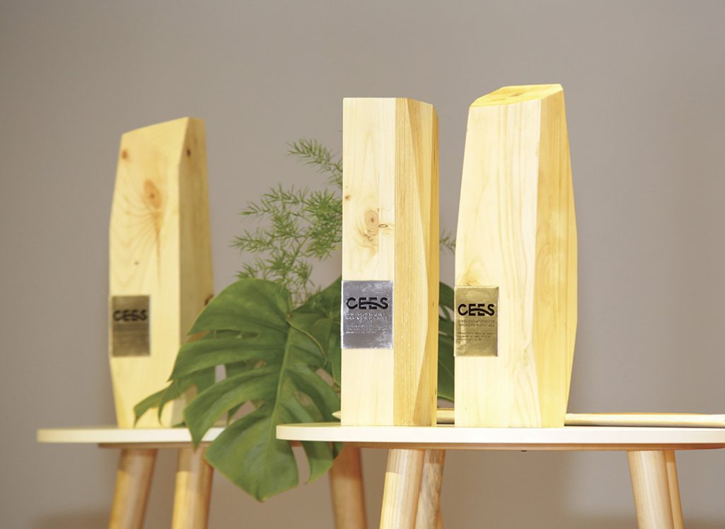 Estatuillas entregadas a: Rodolfo Rendón (QEPD) – Fundador del CEES; Cecilia Paredes – Rectora ESPOL; y Fernando Aguilar – Presidente de la Cámara Ecuatoriana de Consultoría.