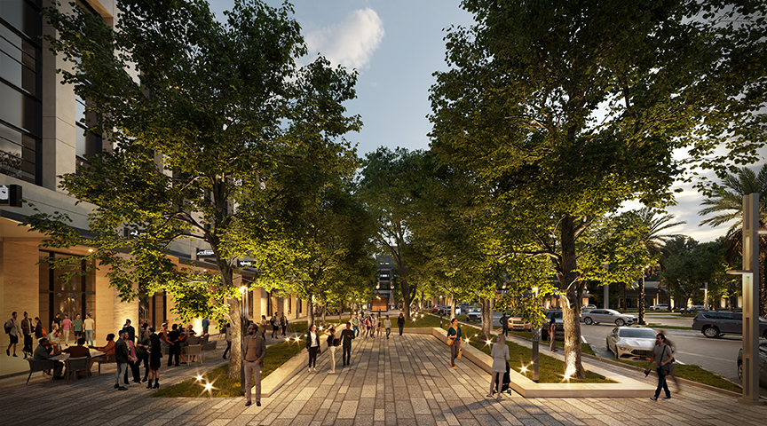 Numa contará con helipuerto, dos grandes parques lineales que bordean la zona corporativa que los hemos denominado Las Ramblas, que tendrán diseño paisajista que incluye mesas y bancas estratégicamente distribuidas para que la gente las aproveche. Alrededor de toda esta zona habrá comercios y servicios, por ejemplo restaurantes, cafeterías, minimercados, peluquerías, gimnasios y más, porque Numa tendrá una población que hará rentables a estos negocios. Además tenemos otras áreas verdes distribuidas por todas las zonas, canchas de fútbol, de pádel y más de 600 estacionamientos para usuarios y visitantes.