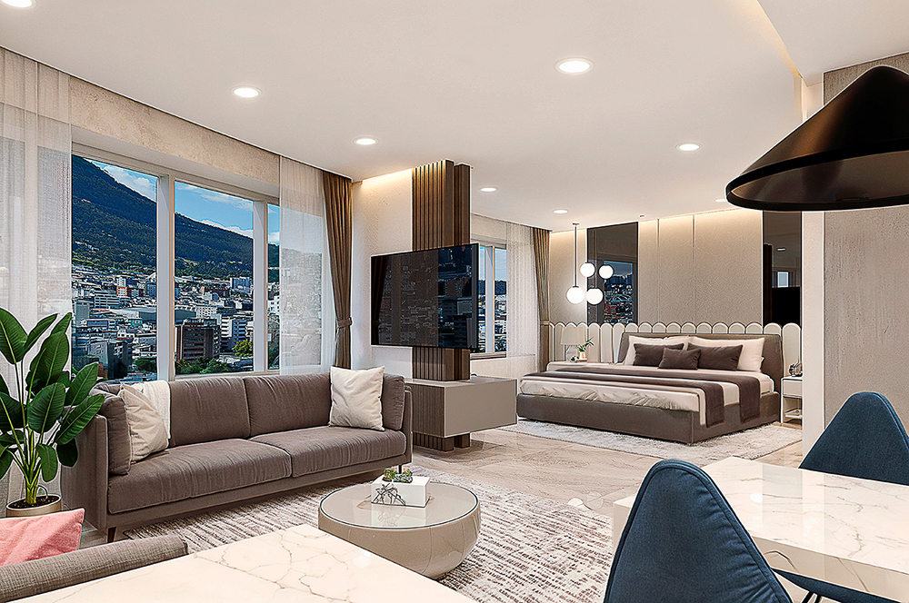 Cada uno de los apartamentos ofrece espacios optimizados que maximizan la luz natural y ofrecen vistas impresionantes tanto de la ciudad como de los alrededores, en los que resalta el mágico perfil montañoso de Quito. Tanto la arquitectura como el sistema constructivo han sido concebidos con visión de futuro, no solamente considerando la dinámica que requieren los compradores de hoy, sino también eligiendo materiales de la más alta calidad, con tendencias eco-amigables para los acabados. Su estructura combina elegancia y funcionalidad en todo sentido.