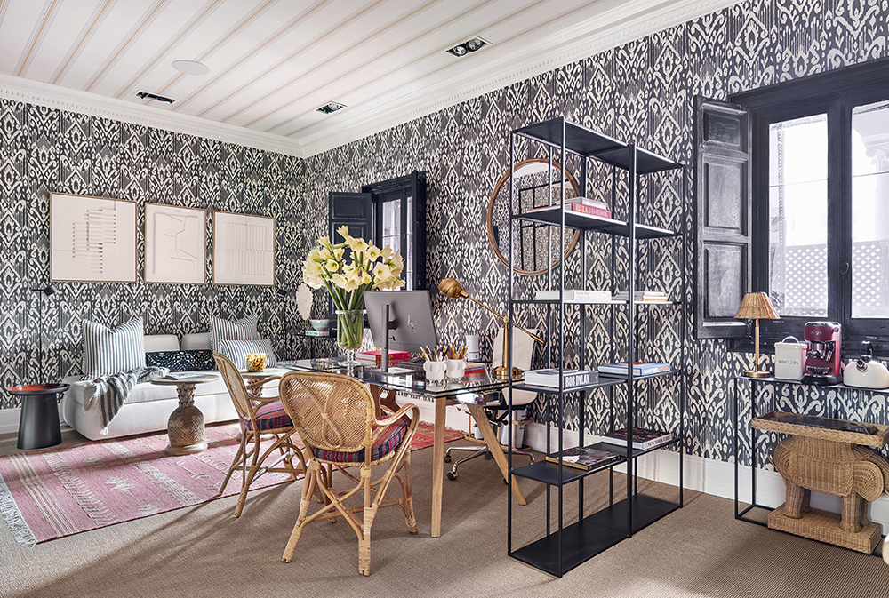 Para este espacio las tendencias del diseño interior que Marsá integró en esta edición de Casa Decor, constan de “una pintura arcillosa con grandes beneficios que le hace altamente saludable. Sus colores y texturas naturales nos atraparon. Esta pintura la aplicamos en paredes que, junto con el papel pintado, también con colores y texturas naturales con un toque étnico, ha sido una apuesta, que combinados entre sí nos encanta”.