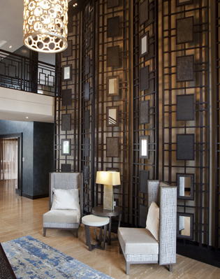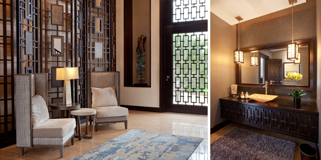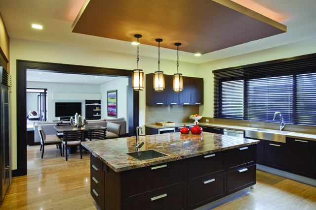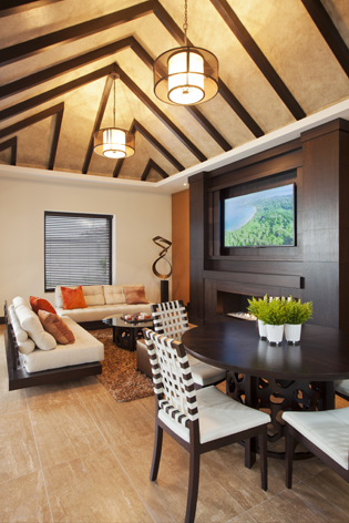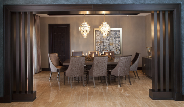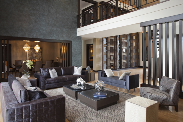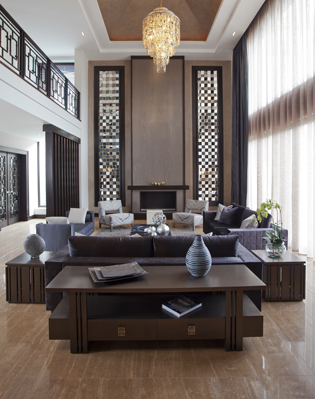 El interiorismo determinó las volumetrías, y el uso y distribución de espacios para una familia de cuatro miembros. El diseño de los techos, la iluminación, y los acabados elegidos son impactantes. Destacan los materiales naturales, como el mármol travertino, madera y piedra.