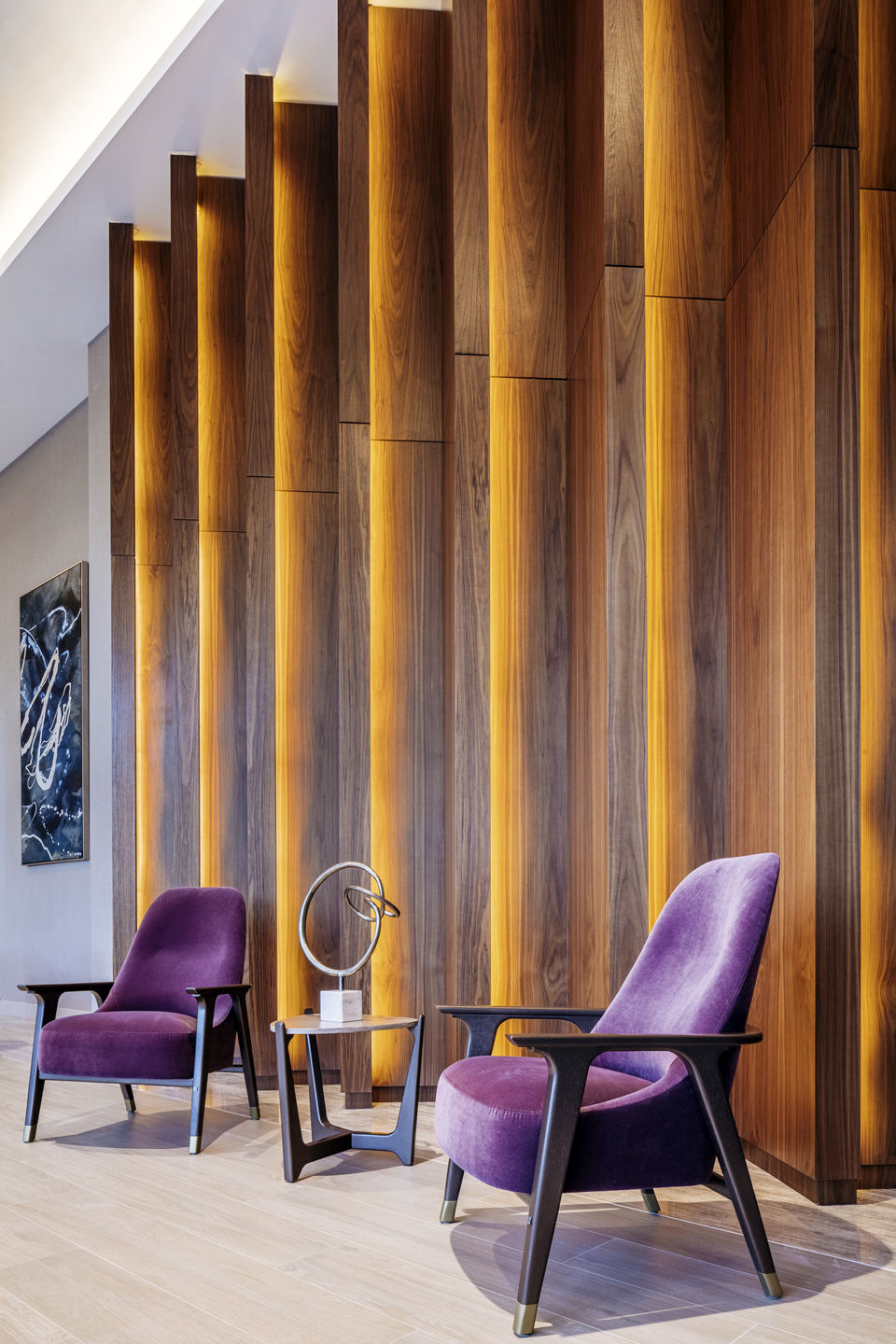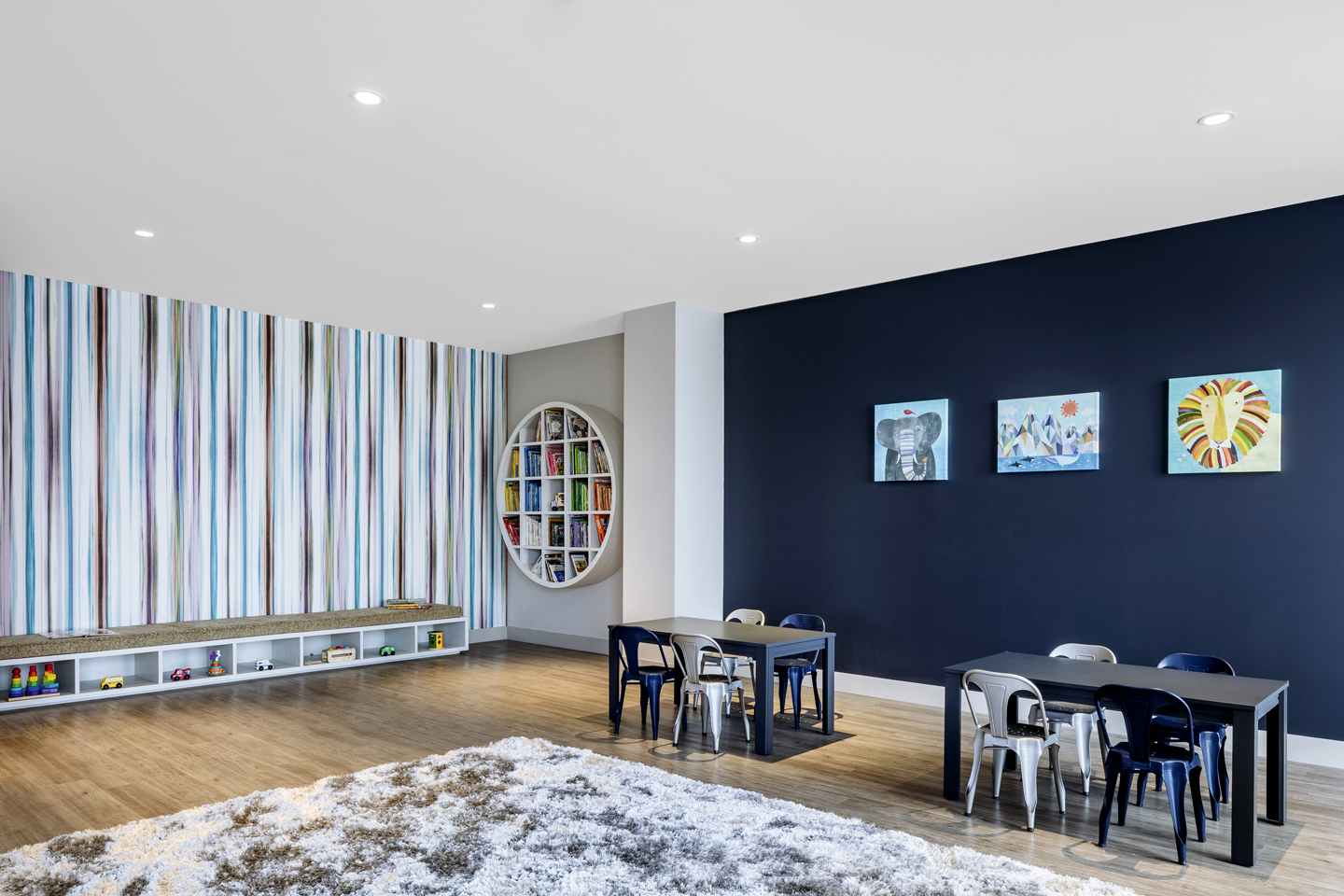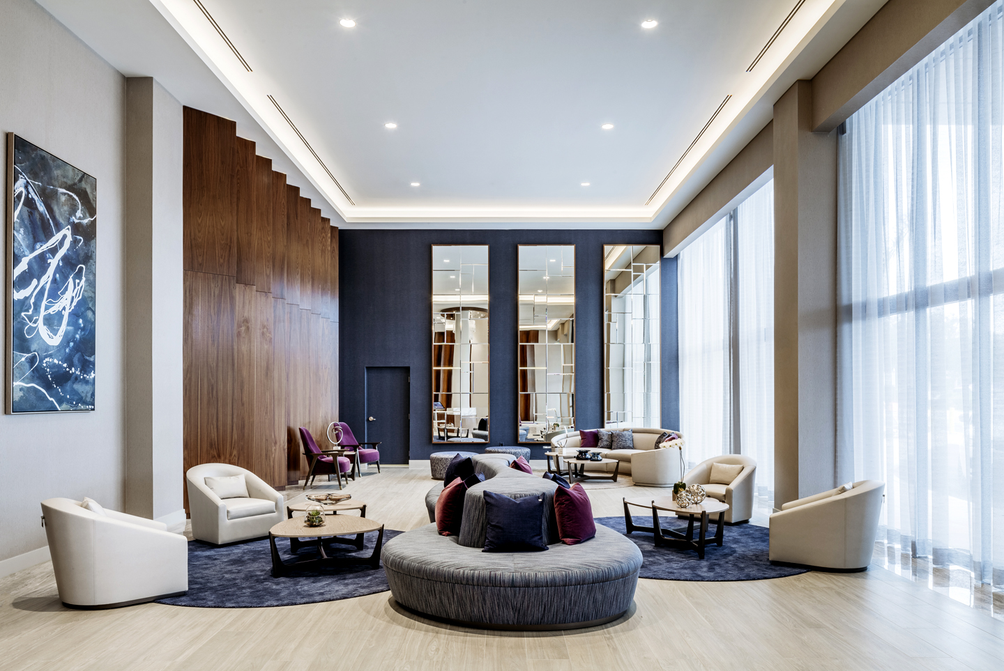 El diseño interior, selección de acabados, iluminación, diseño de carpintería especial, selección de mobiliario y accesorios para el lobby, salas comunales, corredores de ascensores, kids room, gimnasio, salas de juego, cine y piscina, fueron responsabilidad de Adriana Hoyos Design Studio.