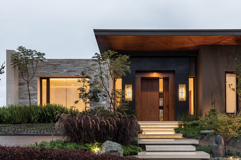 Desde el ingreso principal parece una casa de un piso, como solicitaron los clientes, pero gracias a la topografía se logró una casa de dos pisos. En la fachada posterior se buscó conectar todos los espacios de la casa con el exterior para que los ambientes disfruten del hermoso jardín y de las espectaculares vistas al valle.