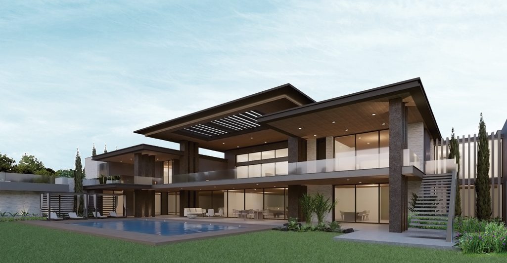 Residenca Ensueño está inspirada en un estilo elegante y contemporáneo. La fachada principal tiene un juego de volúmenes que van de la mano con la distribución interior de la residencia. El diseño de la puerta principal combina elementos sólidos con transparencias con el fin de crear un elemento único. La fachada posterior se abre hacia un jardín espectacular. Los clientes buscaban un concepto abierto en el cual todos los espacios como sala, comedor, porche, BBQ, hidromasaje y piscina se conectaran entre sí para generar una área social muy relajada.