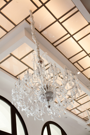 La arquitectura es simple y moderna, como pensada en un gran lienzo donde puedes apreciar todas las cosas que ponemos en él. El trabajo en el techo es muy especial, tiene unos tubos de metal, al estilo de los años sesenta, tipo Bauhaus. La escalera de la galería está hecha con madera tratada como si fuese una línea antigua, simple pero con mucho detalle. La doble altura que tiene el local también te permite apreciar más los candelabros y las mesas. Finalmente, el piso es de cemento pulido, que es una tendencia más contemporánea pero logra la mezcla ideal entre lo antiguo y lo actual. Hay un detalle en cada esquina…