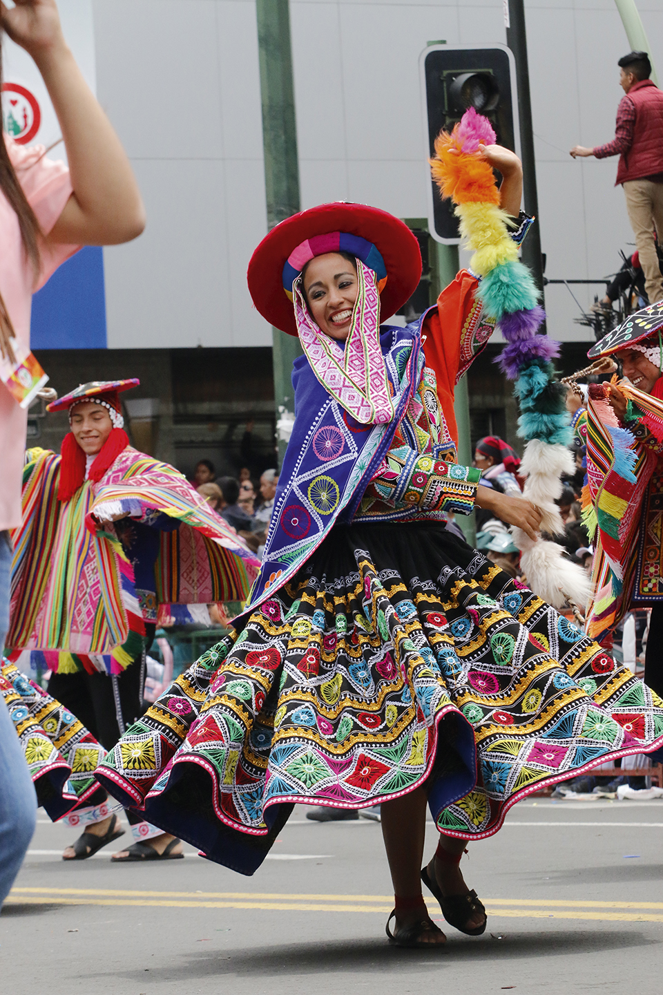 Los acompaña la reina de Ambato junto a reinas de belleza de distintas localidades del país, quienes van sobre majestuosos carros alegóricos decorados con flores y frutas, saludando atentamente al público. El festejo transcurre en las principales calles del Centro Histórico.