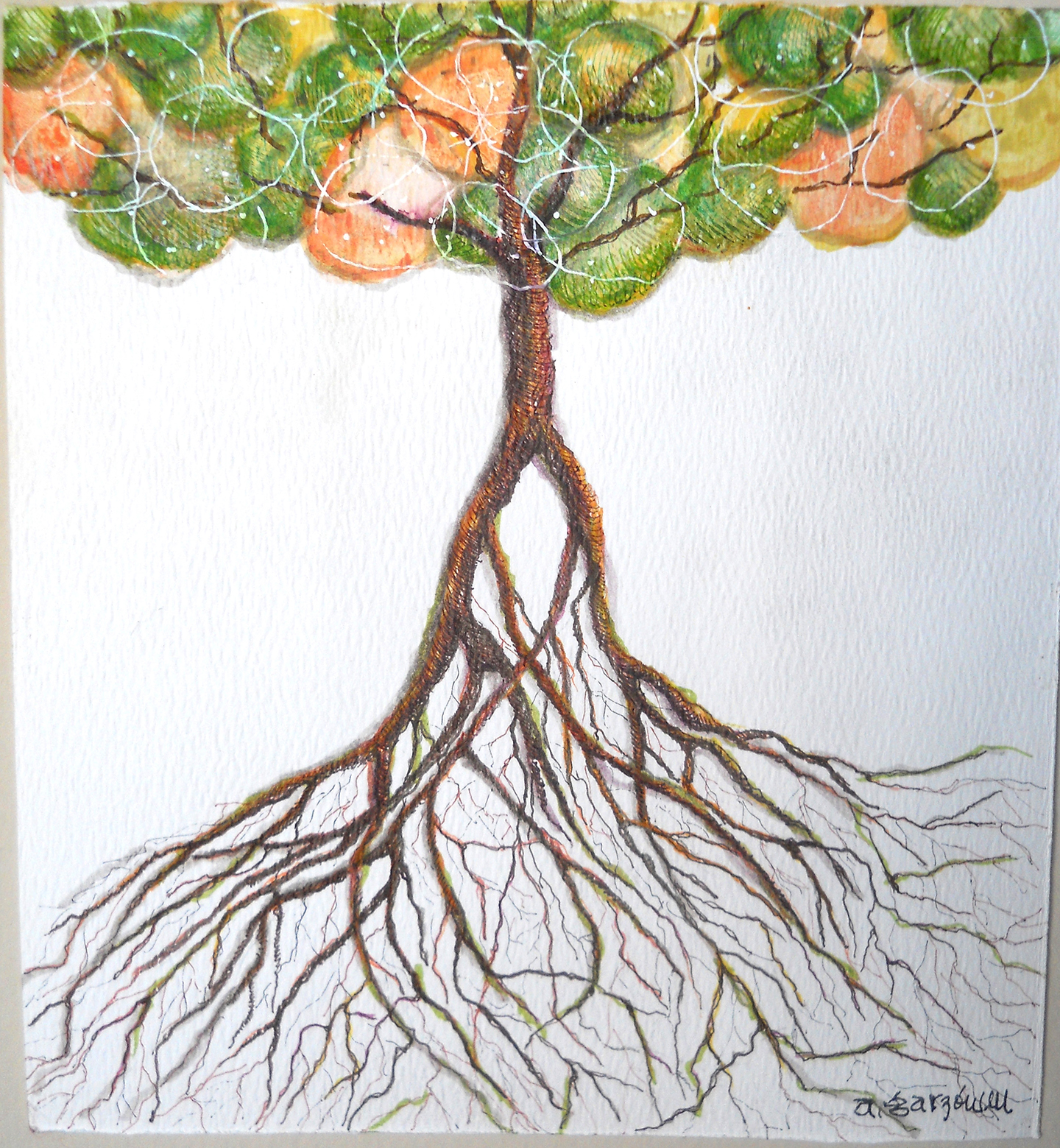 Desde hace 25 años que Amparo pertenece a esta joven escuela, donde el arte empieza a mostrarse en su verdadera esencia, “algo así como un lazo que usa el ser humano para comunicarse consigo mismo y desde esa auto referencia entender al colectivo”, explica. El Healing Art se concibe dentro de un ámbito holístico, en el sentido de que ve al individuo y a su entorno en 360 grados, inclusive en su sentido cósmico y universal.
