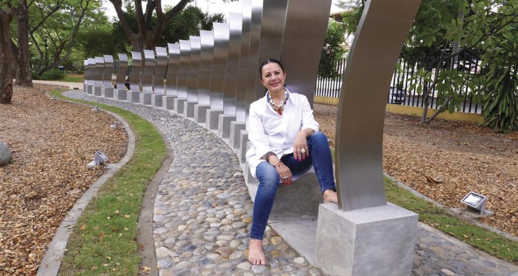 El arte tiene importancia en el día a día, y Amparo considera este aspecto como primordial. Ejemplo de ello es la escultura que colocó en el Estero Salado de Guayaquil, en cuyo parque existe un Camino de Reflexión, escultura que está concebida desde la forma ondulatoria del agua, de los árboles, y desde la horizontalidad y verticalidad del parque. “Se buscó un espacio donde pudiera integrar la escultura con todos los elementos que conforman esa naturaleza que tiene el estero, no se botó ningún árbol, ninguna flor”.