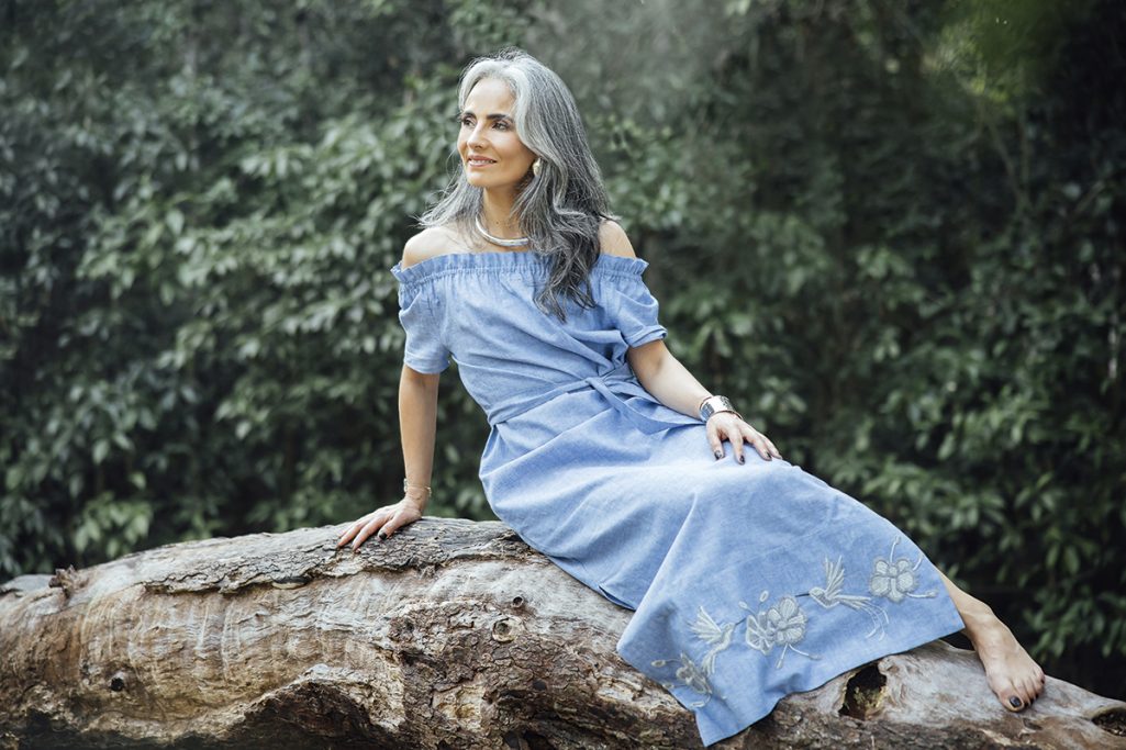 En ese momento no hablamos de sus canas. Pero, luego, sale el tema. Reconoce que los mechones grises le aparecieron a temprana edad. Se teñía el pelo. Todos los meses a la peluquería. En ese entonces creía que las canas eran vejez. “Era como rendirse”, reconoce. Sin embargo, durante la pandemia no tuvo alternativa. Le costaba pasar por el espejo y mirar las raíces blancas. Uno de sus hijos le apoyaba para que se las dejara así. Con el paso de las semanas la evolución de su pelo se convirtió en algo divertido para toda la familia. Su pelo se adaptaba al estado natural, mostrando gamas grises, blancas, plateadas. Como si estuviese floreciendo, rechazando los químicos de los tintes del pasado.