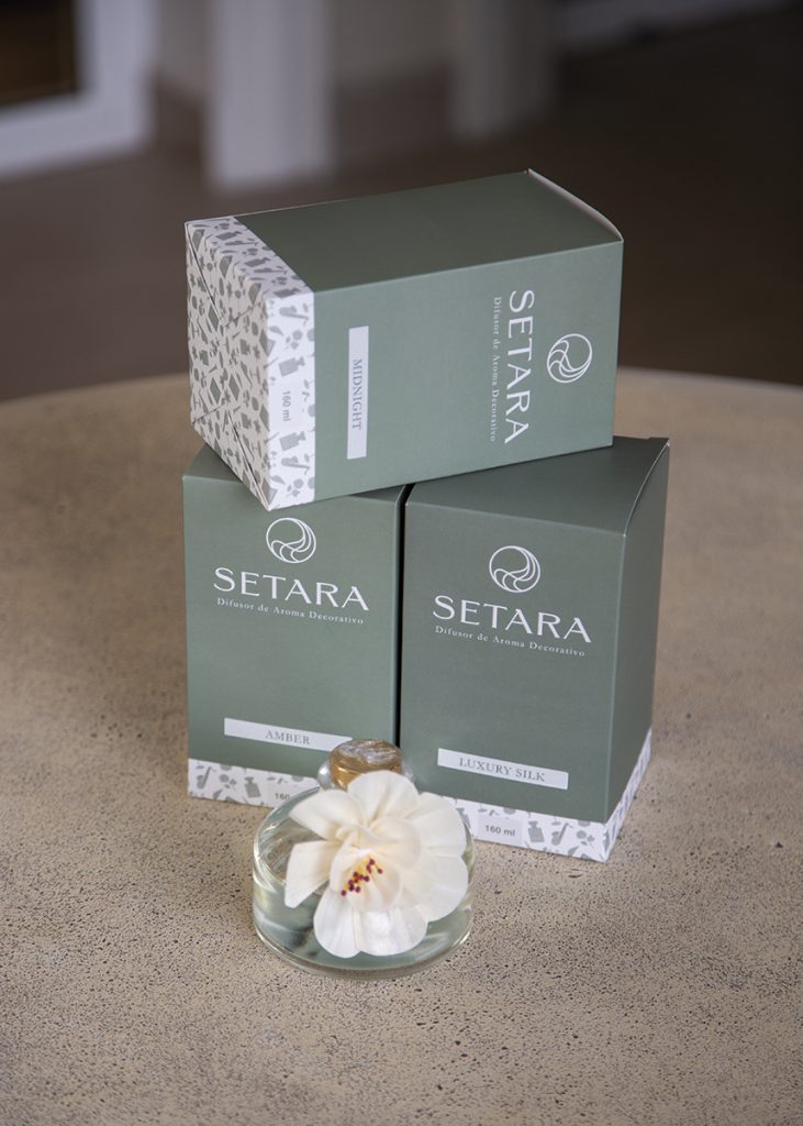 Además de velas, SETARA también tiene su línea de difusores de aromas. Las esencias van desde lavanda y frutas rojas hasta el pomelo y la gardenia, o la bergamota y el sándalo. Los productos de SETARA se pueden conseguir en Kay Cosmetics en Paseo San Francisco, Unity Store en Scala Shopping, y en Guayaquil en Aromas y Recuerdos. Asimismo, a través del canal digital de Ópalo.
