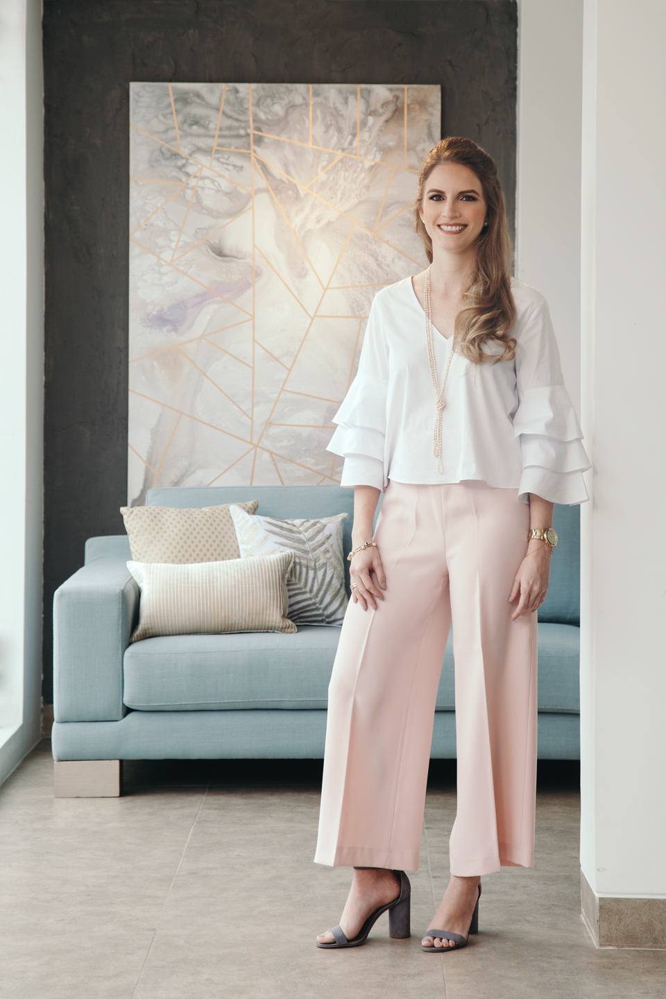 Mientras realizaba su sesión de fotos para CLAVE! esta joven mamá de dos pequeños, y uno más en camino, demostró ser una mujer minuciosa, espontánea y alegre. Forma un equipo de trabajo con tres profesionales más, incluida su madre, María del Pilar García, y eso le fascina. Su progenitora también estudió diseño de interiores, enfocada en la decoración de muebles. De hecho, Diarte era en principio una mueblería creada por sus padres hace 37 años. “Recuerdo que antes venía a jugar como ahora lo hace mi hijo, pero actualmente este es mi lugar de trabajo donde empecé por renovar el logotipo”.