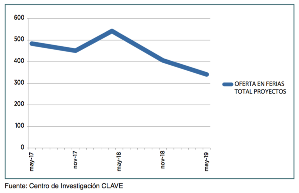 El total de ventas verificado exclusivamente durante los días de ferias muestra similar comportamiento que el de la oferta, y evidencia un menor tamaño del mercado comprador. Las altas tasas de desempleo ponen sobre la mesa la realidad en la reducción del poder adquisitivo de los ciudadanos: menor número de compradores con posibilidades de acceso a crédito hipotecario para comprar casas, departamentos, terrenos, oficinas o locales comerciales.