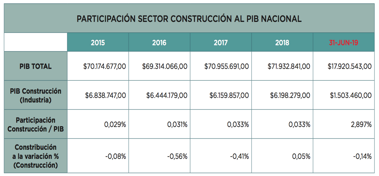Para finalizar con este análisis hemos visto prudente establecer la situación macro del sector de la construcción y actividades inmobiliarias, a través de una comparación con el aporte de esta actividad al Producto Interno Bruto (PIB) durante los años del estudio. Es importante considerar que las cifras oficiales incluyen obra pública y privada, y por lo tanto abarcan mucho más que la inversión en construcción de inmuebles para vivienda, urbanizaciones, oficinas o locales comerciales.