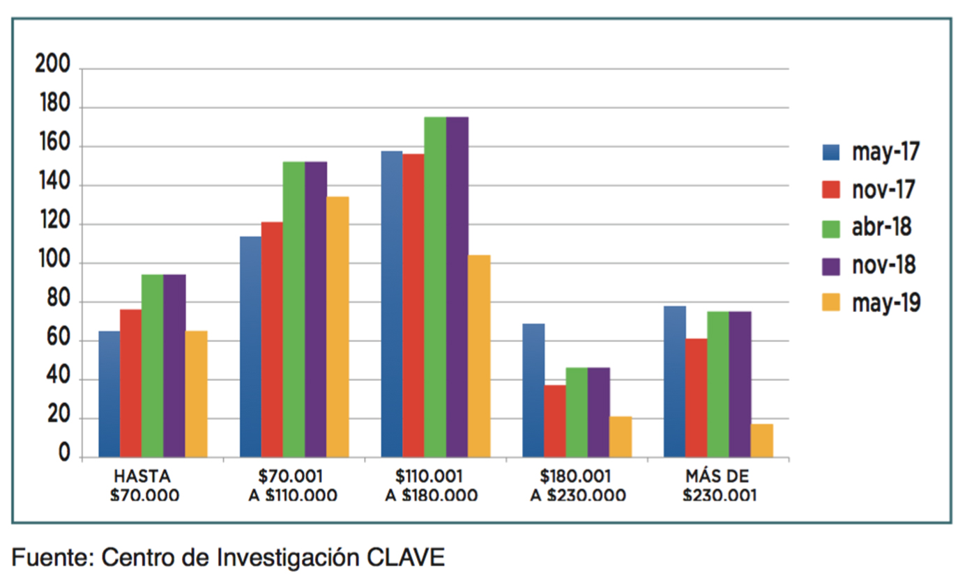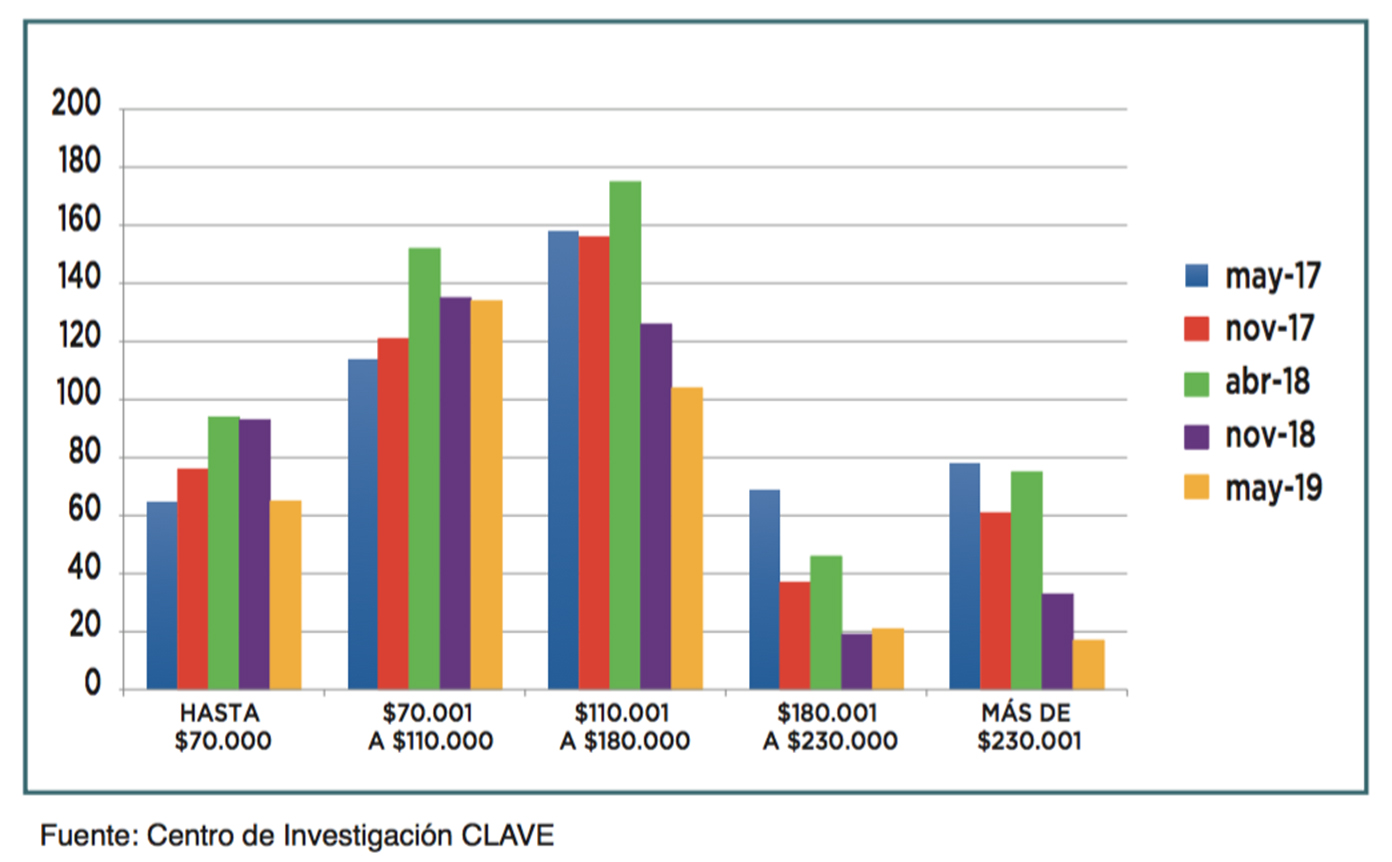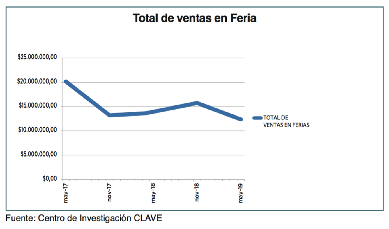 Si bien la curva ascendió en noviembre 2018, probablemente gracias a los anuncios del gobierno relacionados con el acceso a recursos internacionales que dinamizarían la economía, la ciudadanía se mostró esquiva a adquirir créditos a largo plazo por la inseguridad en sus fuentes de ingreso. A partir de ahí la curva de ventas en las ferias analizadas tomó un ritmo descendiente que aun se mantiene.