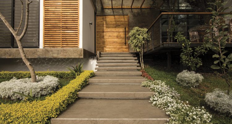 El desnivel del terreno fue aprovechado mediante el diseño de escaleras que conducen a la entrada principal de la vivienda donde la presencia de la vegetación es una constante. De igual manera se dispuso, alrededor de la casa, un patio de servicio que sirve como ducto de iluminación y ventilación.