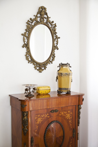 Siendo muy extrovertida en su personalidad y moderna al vestir, es difícil imaginar que su casa tenga acentos clásicos. “No soy el tipo de persona que entra a un almacén y compra todo un juego de sala y comedor del mismo estilo. Me arriesgo a buscar elementos de diferentes tendencias y épocas”. Además, ha reutilizado cosas que ha adquirido con el paso del tiempo.