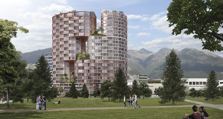 “En 2023, dos nuevos rascacielos formarán parte de las estructuras en altura que están transformando el horizonte quiteño. Un edificio diseñado por Bjarke Ingels Group (BIG), firma de arquitectura trendy, se elevará 100m sobre la zona central de Quito. Qanvas, torre de 24 pisos ubicada en la misma zona, diseñada por los arquitectos ecuatorianos Diez+Muller, también estará terminada pronto.