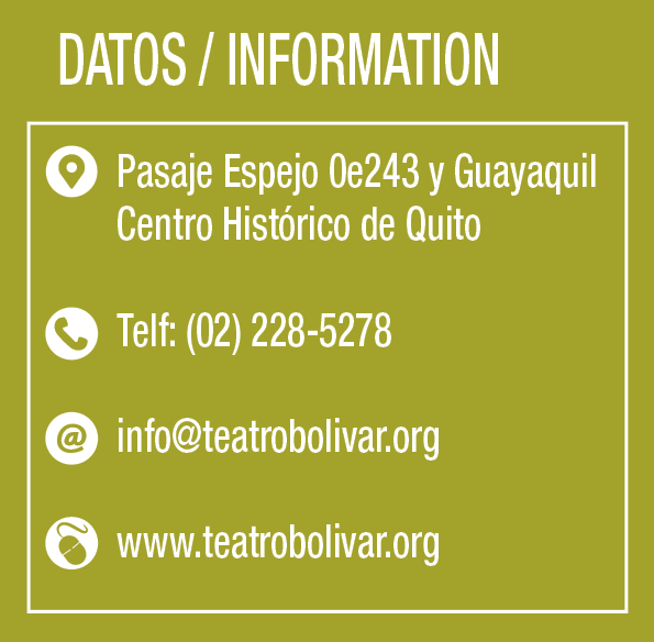 Located in the immediate periphery of what has been the central square of Quito since its Spanish foundation, the Bolívar Theater was built on the land once occupied by two houses owned by the Palacios family, on Espejo Street, between Guayaquil and Flores. The houses were overthrown to enable the Theater construction.