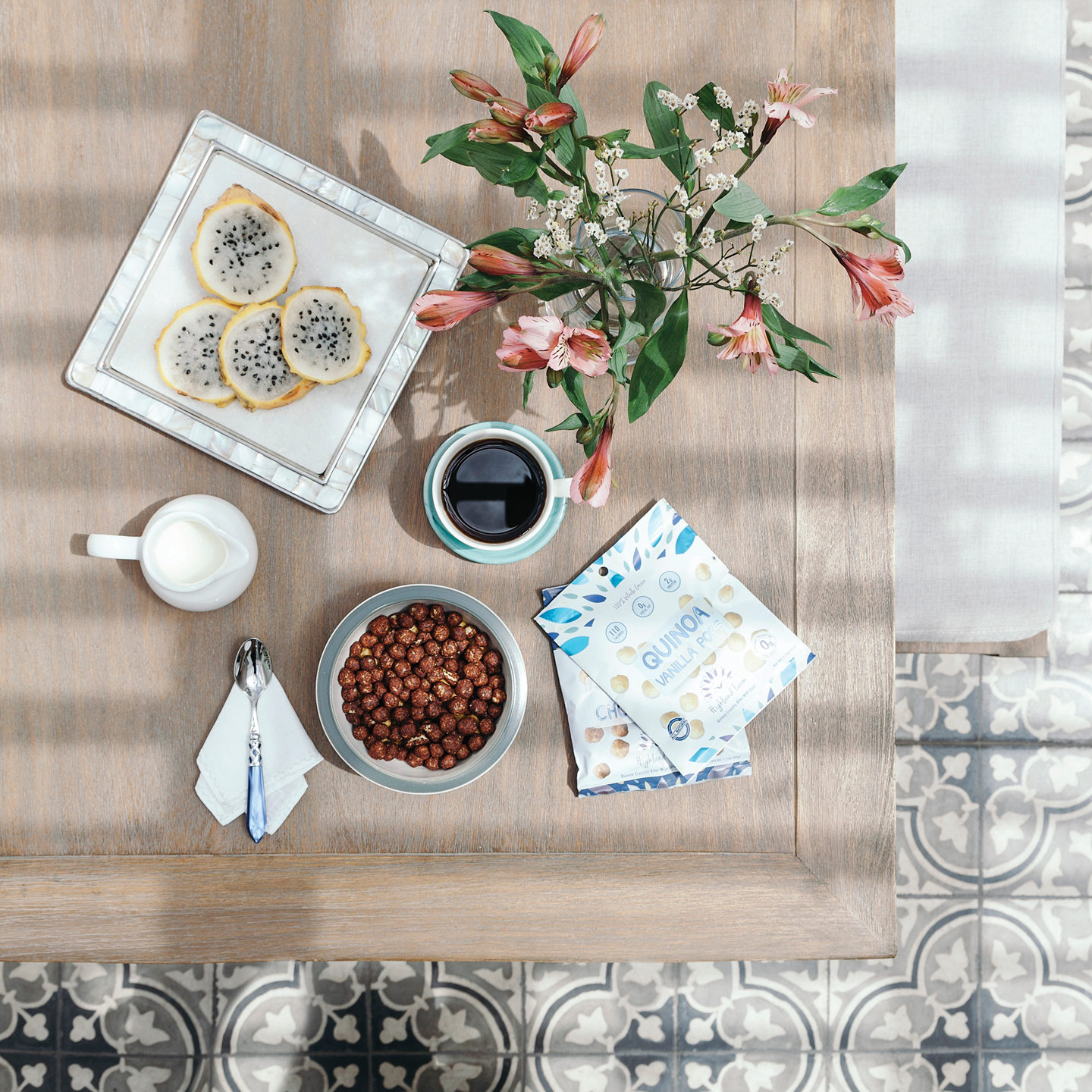 Una larga mesa de madera es el lugar donde decidimos continuar esta amena conversación mientras disfrutamos de la compañía de su sobrina Aurora, quien goza de un saludable y delicioso lunch. Quinoa Pops, producto que nace del ingenio de Camille, es una opción estupenda para los padres de familia que se preocupan por dar alimentos saludables a sus hijos, sin abundantes cantidades de azúcar, gluten, grasas saturadas o transgénicos.