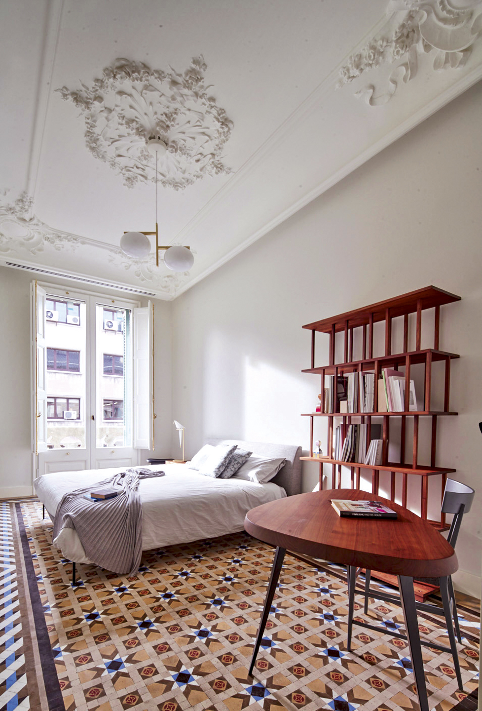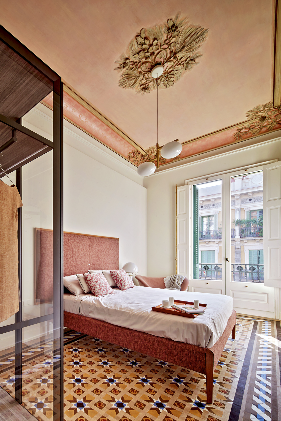 Ante este panorama se tomó la decisión de respetar al máximo la construcción original de esta vivienda, catalogada en 1979 como bien de interés cultural. “El objetivo fue no alterar la esencia de Casa Burés. Se procedió a la reorganización de las plantas y a la restauración respetuosa tanto del interior como de las diferentes fachadas del edificio, protegidas por su gran valor, al igual que el patio interior, las cristaleras y la escalera”.