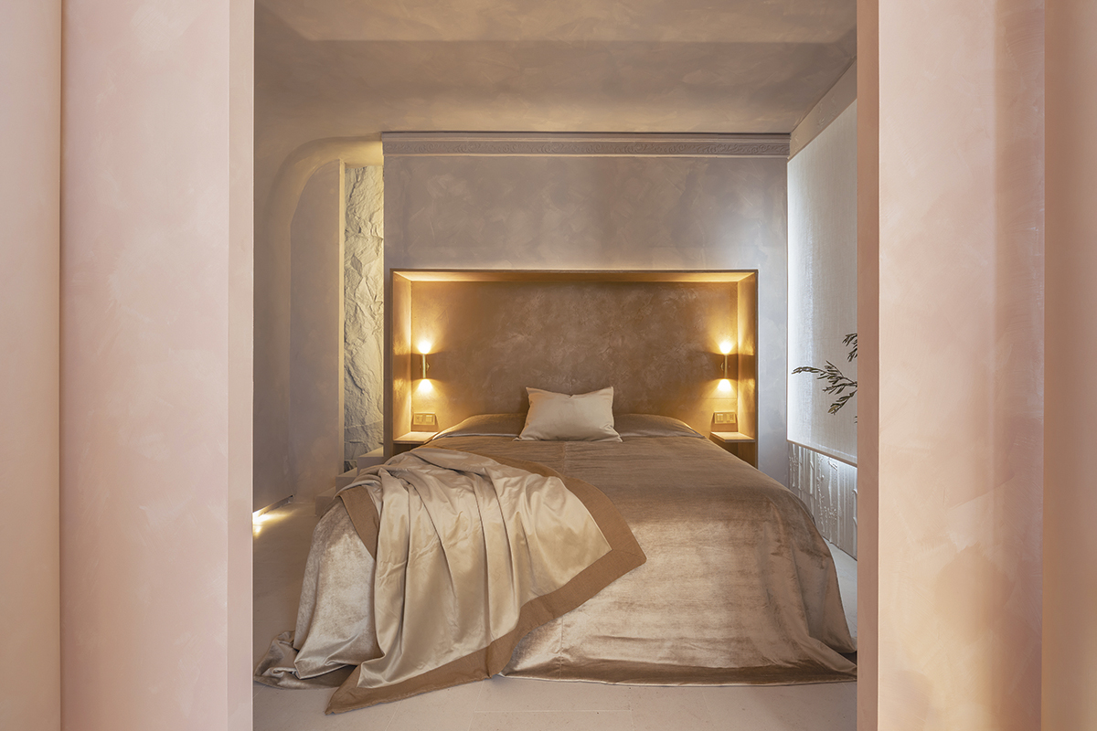 Desde un enfoque complementario, “Ibiza’s Soul”, traduce el lenguaje arquitectónico del Mediterráneo insular al contexto urbano. El mármol travertino, las paredes encaladas y los textiles de lino natural recrean la estética de una villa ibicenca. El mobiliario de líneas minimalistas refuerza una atmósfera de calma profunda.