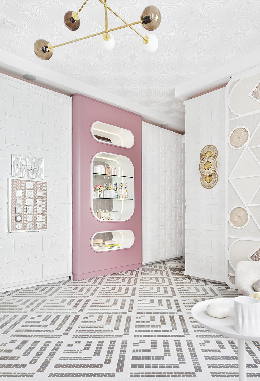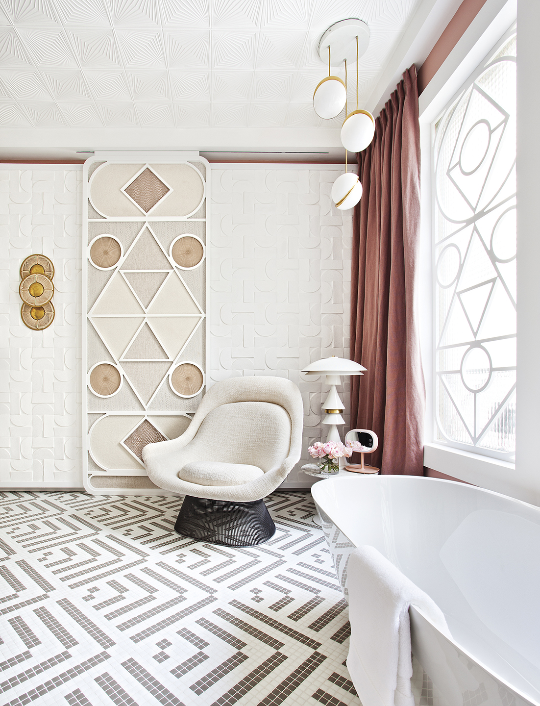 En la gama del rosa y los pasteles, también se hizo presente el espacio Hager de Miriam Alía, que correspondía a los baños públicos de la cuarta planta, mismo que estuvo presidido por la bañera exenta “Theano”, de Villeroy & Boch que recibió una mención del jurado “por sus proporciones equilibradas y contornos geométricos inspirados en el Art Déco, que hacen de esta pieza un elemento de gran belleza atemporal y que, además, gracias a los innovadores materiales que se han utilizado en su fabricación, es una bañera robusta, resistente y antideslizante”. Este espacio se llevó la Segunda Mención al Mejor Diseño Original de Empresa.