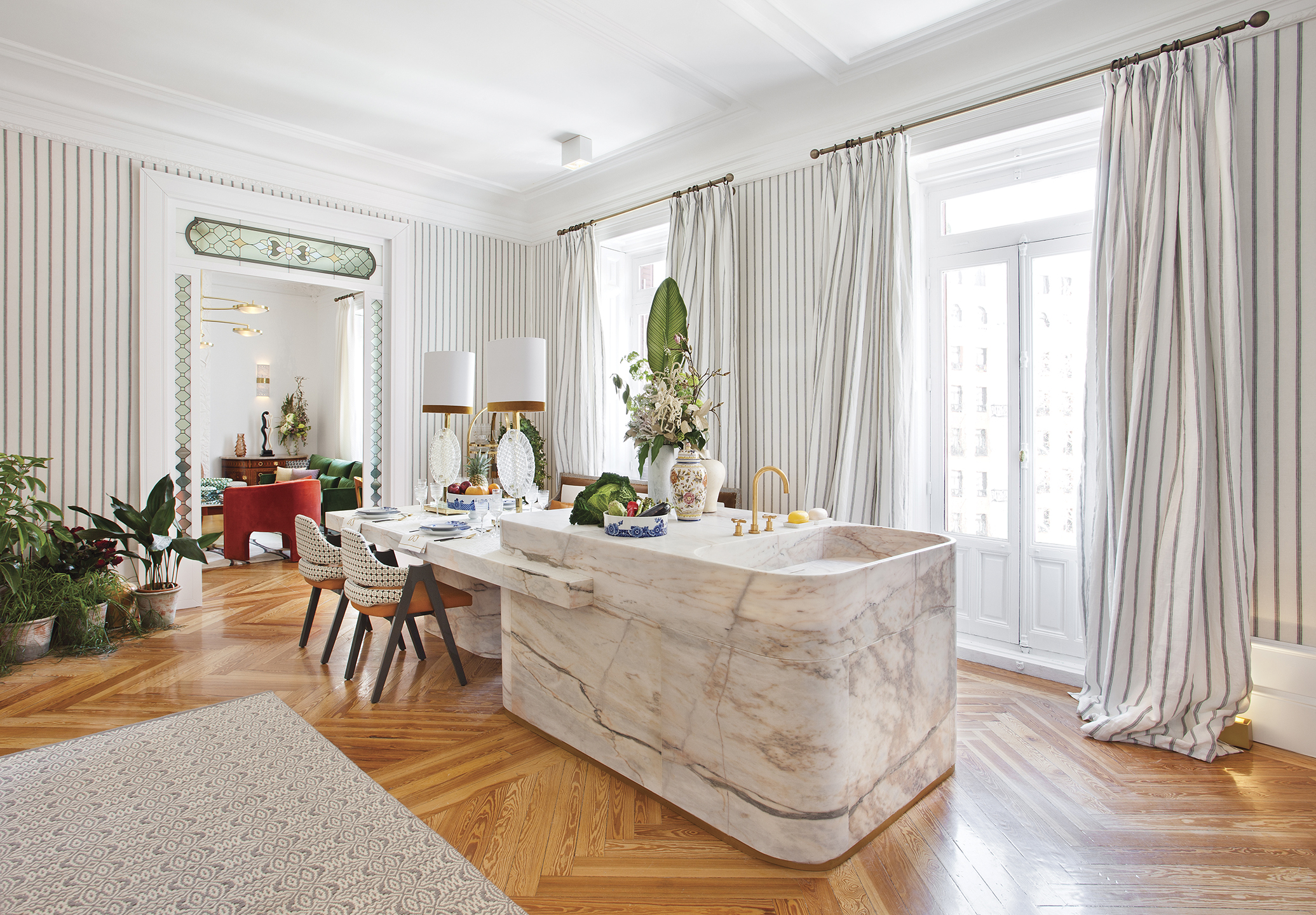 Entre los elementos que fueron valorados por el jurado están la originalidad y frescura del espacio, y las piezas diseñadas por la autora como el sofá o la isla de piedra, que ponen de manifiesto su particular estilo.