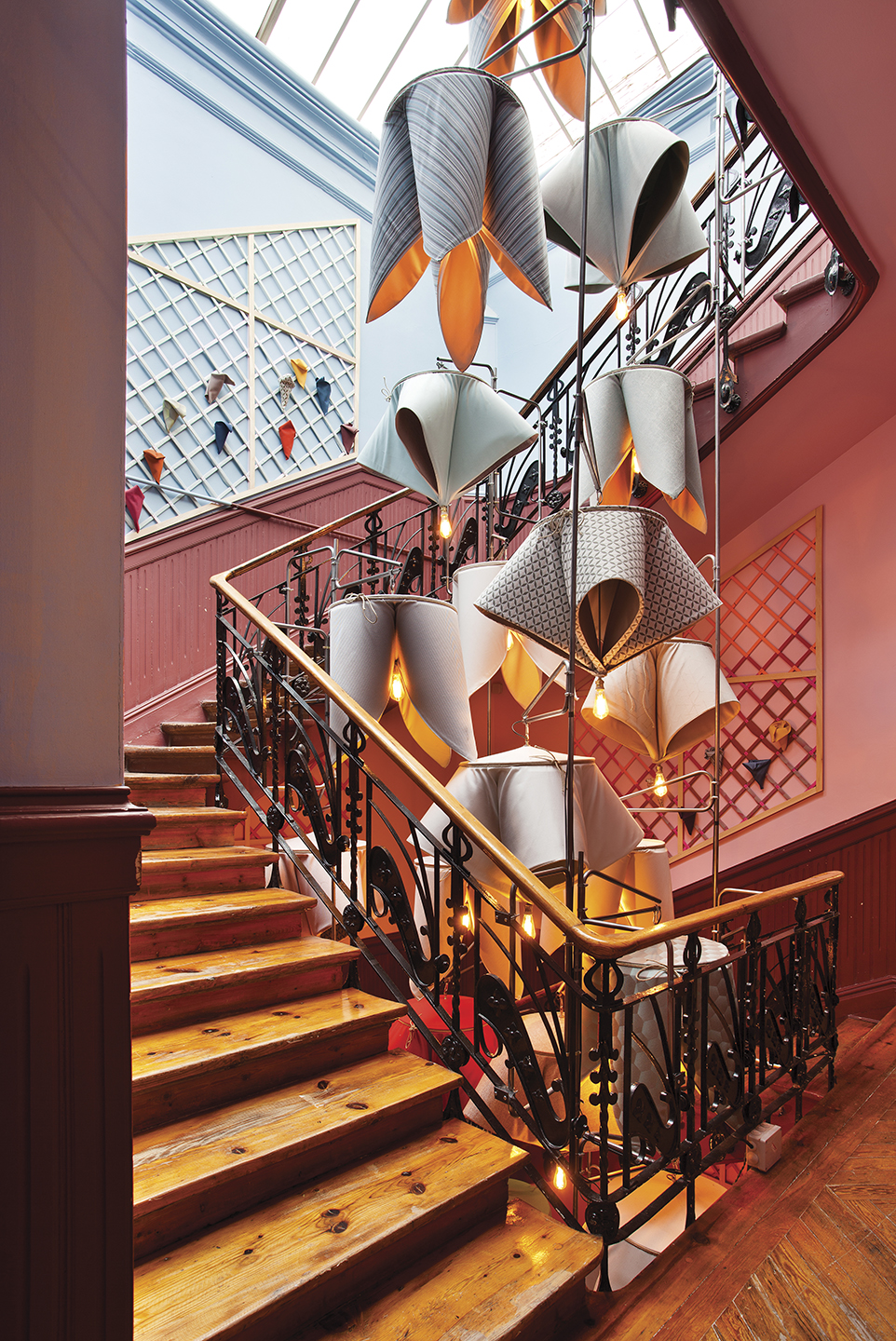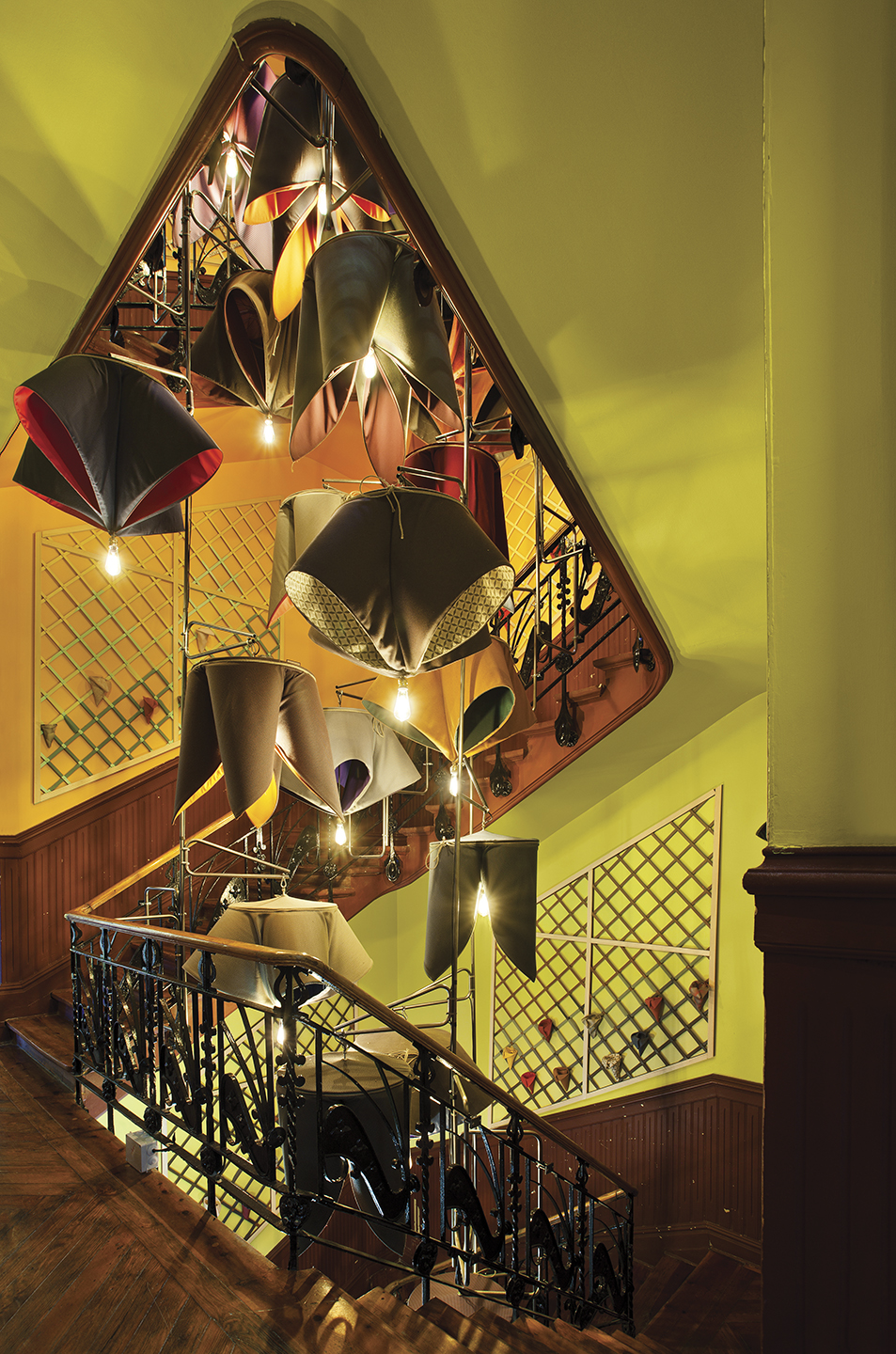 La creatividad en este espacio no conoció barreras, ocupó lienzos en los cuales se expusieron sueños, anhelos, emociones y las más intrépidas sensaciones. Es así que “69 luminarias forradas con textiles de Sunbrella a lo largo de todo el hueco central de la escalera, completando el conjunto las paredes pintadas con distintos tonos de la carta de colores de Procolor y decoradas con enrejados de madera”, además de la combinación de textiles y pinturas, daban un particular toque de esteticismo mientras se accedía a cada uno de los pisos. Así, por sus Lámparas del Espacio Sunbrella, la arquitecta Izaskun Chichilla se hizo acreedora al Premio al Mejor Diseño Original de Decorador.