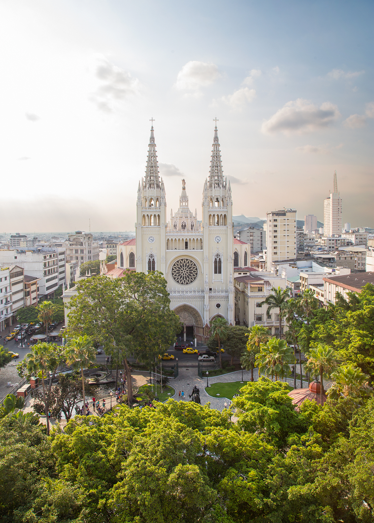 Ubicada en pleno centro de Guayaquil, frente al Parque Seminario, esta catedral impresiona por su llamativo estilo neogótico. En su interior hay quienes rezan concentrados, quizás por alguna petición o por dar las gracias, para ellos pasa inadvertida la belleza e historia que esconde este imponente templo. También existen turistas que recorren el lugar y toman fotos maravillados por cada detalle arquitectónico.