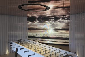 Dentro de una cáscara de chocolate negro en forma de cacao, decorado con tintes naranjas y amarillo, se encuentra la interpretación del sabor ...