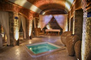 A microphone stands over colorful rugs, shrouded with a white scarf, next to a table that supports a steaming teapot with hot tea to help warm up her voice. Small perfect details created the ambiance for Joss t...