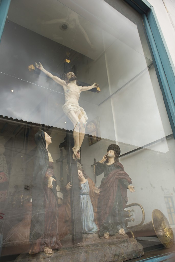 A block and a half from El Arcón, on Presidente Córdova Street, on the corner of the Madres Conceptas monastery, is the “Galería Artes” [Art Gallery], a place where antiques are joined with contemporary art. Galo Durán, the proprietor, has spent 23 years as an antiques dealer, while also selling handicrafts and paintings. An exhibition of Alejandro Beltran´s work can be admired alongside figures of Christ crucified, of his calvary, of children, angels and archangels, following the traditions of Cuenca´s Catholic heritage and recalling the artistic achievements of the 17th century Quito School of painting and sculpture.