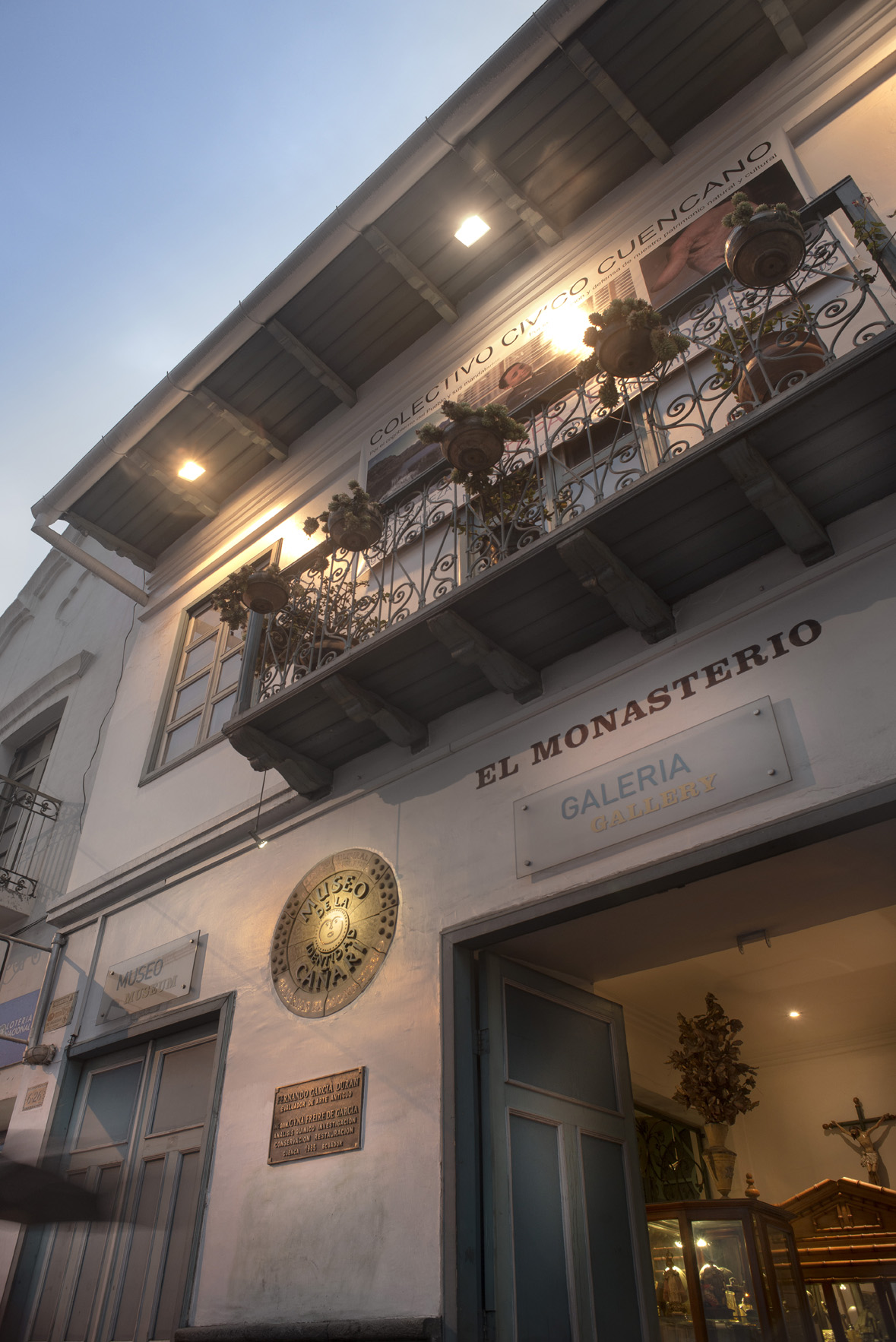 Diagonal to Galería Artes is the El Monasterio [The Monastery] which encompasses the Cañari Identity Museum, the El Monasterio art gallery and the Gaspar Sangurima cultural center. It provides technical advice on Cañari and Inca (both pre-Hispanic Indian communities) architecture as well as colonial and republican Ecuadorean sculpture and painting. It also exhibits and sells contemporary art, religious handicrafts and, of course, antiques.