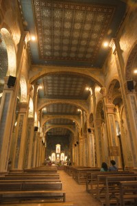 En su interior la belleza de sus acabados es impresionante: rosetones en su cielo raso como base de las lámparas, puertas talladas con motivos marianos, y el retablo de madera de contextura gótica, dan cuenta del nivel de exigencia al adornar la parte interior del templo, que también fue obra del hermano Juan.