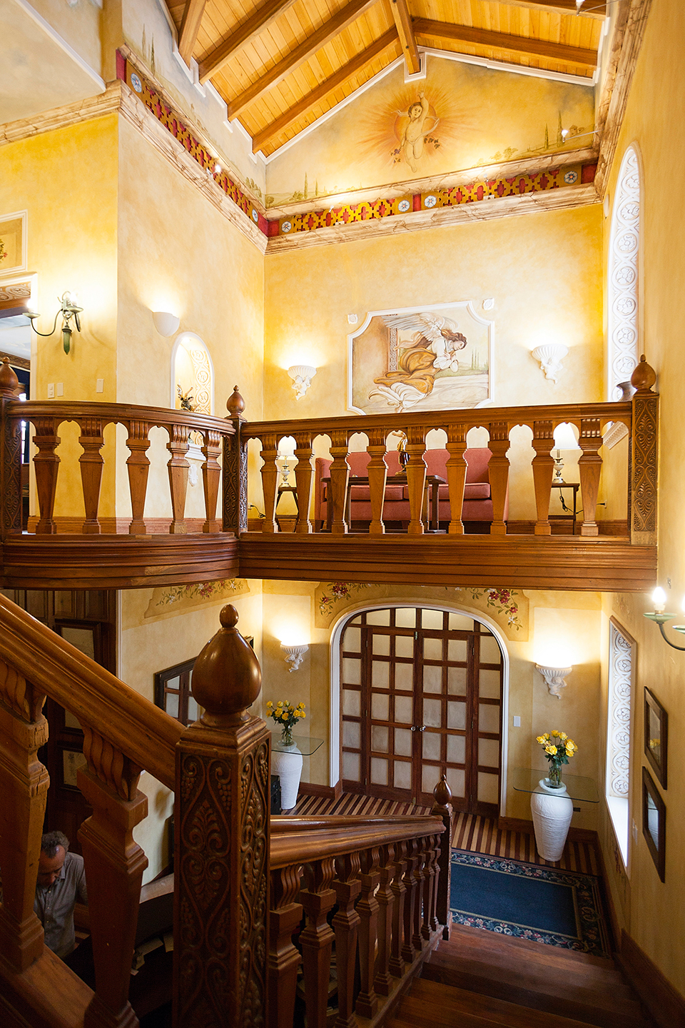 Anecdotes like this, are found here and there in the architecture of this mansion. They grow with the events that took place during its restoration. For example, modern techniques were employed to transplant ten Quito palm trees, each 46 feet tall, framing the beautiful garden that surrounds this building.