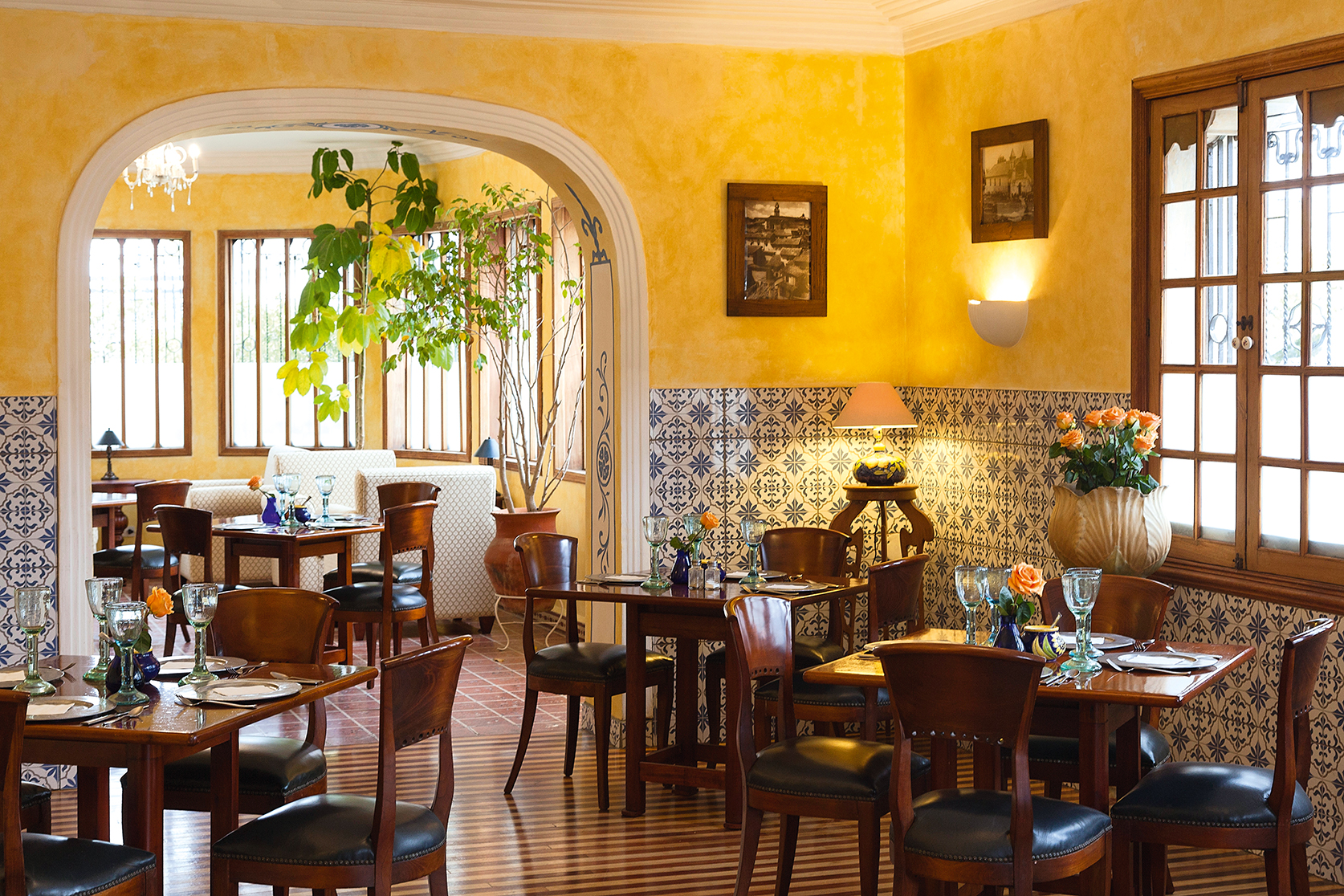 The restaurant, decorated with Andalucian tiles, seems to have been extracted from the heart of Seville. Delicacies are prepared daily, freshly beaked bread out of the oven, homemade marmalades and fine pastry delight the palates of the guests. The tastiest dishes of Ecuador´s cuisine, with in the slow cooking process at low temperatures in a kitchen designed by a Michelin chef, are part of the innovative daily menu, blending new and exciting tastes and aromas in order to please our guests apetite.
