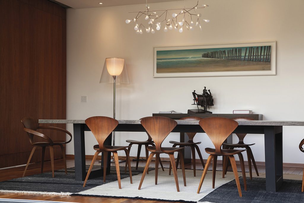 Me encuentro con que su casa es un fiel reflejo de ese retrato que construí en mi cabeza. Líneas rectas, pero abrazadas por la calidez de la madera. Decoración minimalista, funcional y práctica. Arte sobre las paredes. Una habitación destinada exclusivamente para la música. El diseño arquitectónico, a cargo de Juan Erazo, se concibe de tal manera que las áreas sociales de la casa están absolutamente separadas de los espacios privados, como salas de estar y dormitorios.