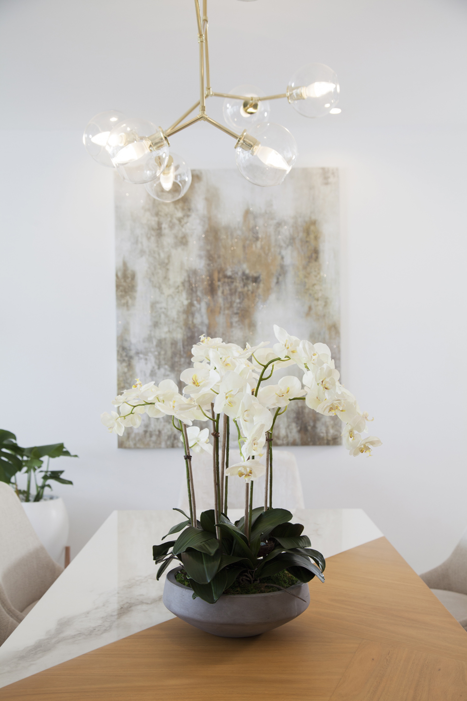 Realizamos una remodelación completa de la vivienda de Daniel Tormen y Patricia Cobos, y la convertimos en un oasis en medio de la ciudad con un estilo district jungle, súper chic. Logramos darle un concepto totalmente diferente al que tenía en un inicio porque era un departamento sumamente oscuro. Dimos mucha fuerza al tema cromático para conseguir claridad, usando colores neutros y tonalidades suaves, y trabajamos con muchas plantas para crear ambientes naturales y frescos.