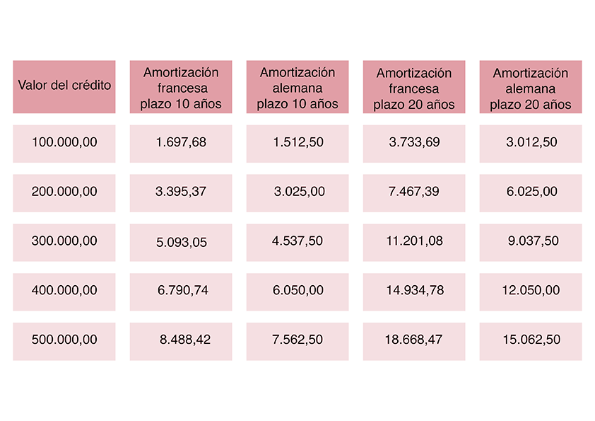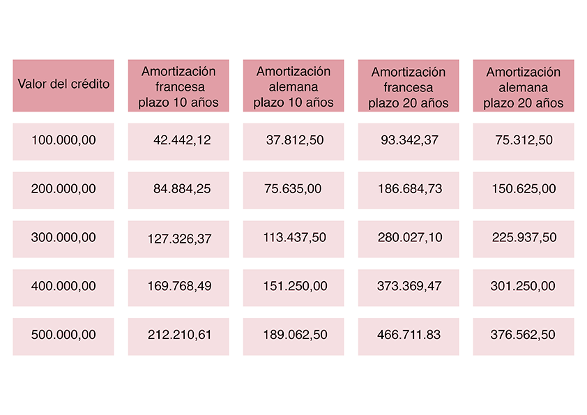 En el sistema francés, donde el saldo de la deuda baja más lentamente al inicio porque la mayor parte de la cuota se aplica a intereses, los seguros terminan costando más. En el sistema alemán, en el que el capital se amortiza más rápido, es decir, el saldo de la deuda disminuye más rápidamente, el costo total de los seguros es menor.