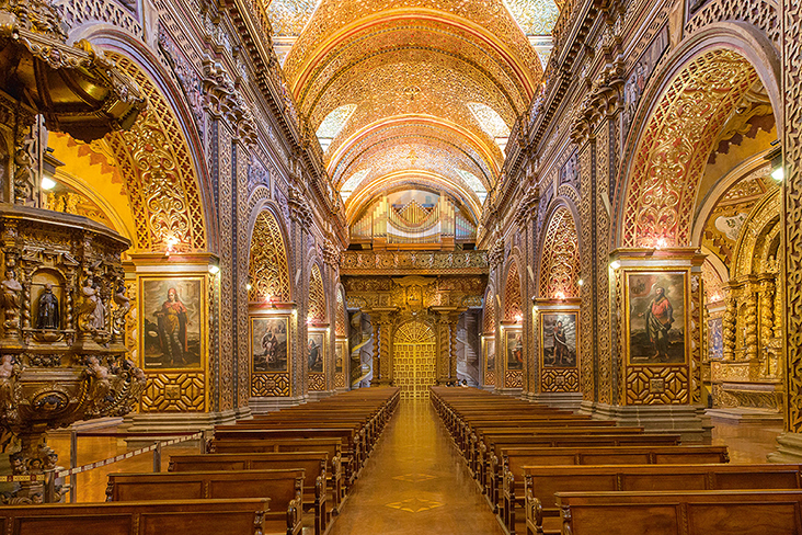 Este templo es la joya de la corona del arte quiteño. Quien recorra Ecuador persiguiendo la esencia de este estilo, no busque más; entre directo a La Compañía; o quizás, sería mejor reservar esta visita para el final; podría ser que el resto de su viaje palidezca en comparación.