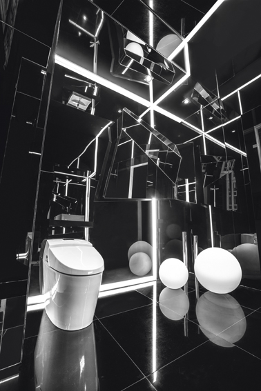 El baño fue un ejercicio de diseño que radicaliza a través de un envolvente oscuro. Promueve un entorno dinámico, sencillo y funcional, de sobria estética.
