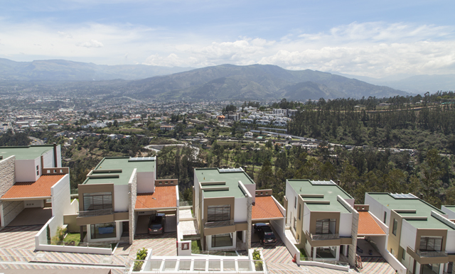 La pendiente natural del terreno fue aprovechada de tal manera que cada unidad de vivienda tiene vista privilegiada. Nada entorpece la mirada hacia el horizonte que por un lado es bosque, por otro es valle, y por otro es el Quito moderno y cosmopolita.