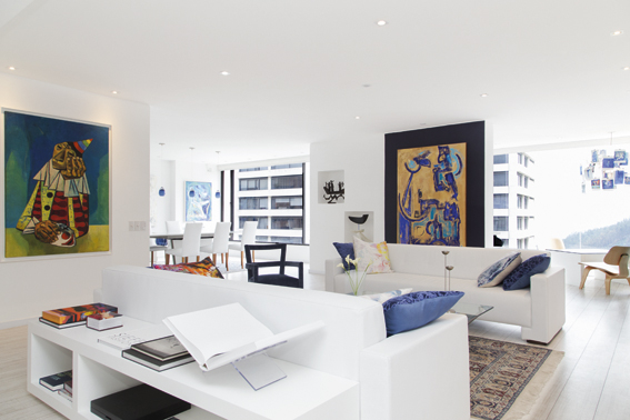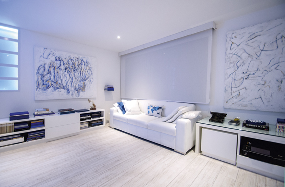 Entrar en este mundo es respirar arte en todas sus expresiones. Las paredes y los muebles son blancos, lo cual transgrede con las normas habituales de un espacio de residencia, pues de alguna manera da la sensación de estar en una galería de arte contemporánea o en el departamento de playa de alguna celebridad.