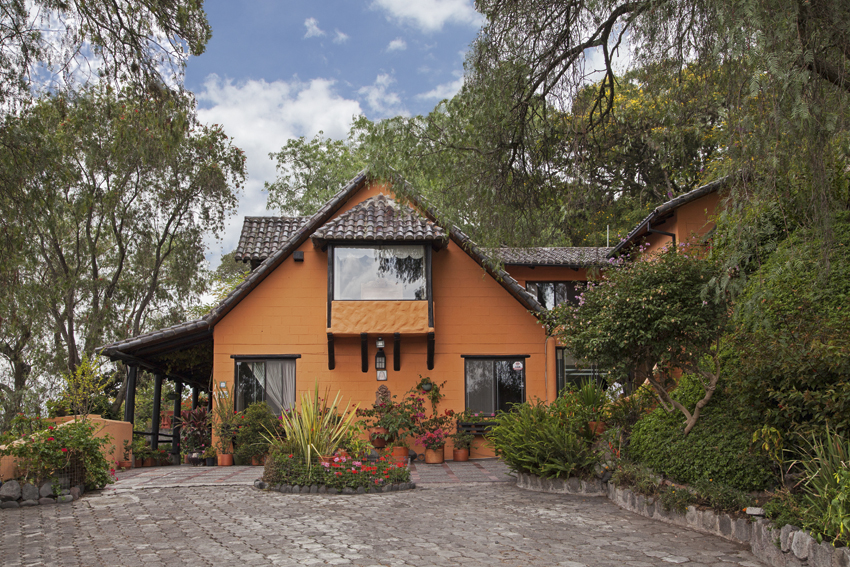 La casa que visitamos es el fiel retrato de aquellas descritas en los cuentos de hadas. Localizada en una loma y rodeada por unos cuantos centenarios árboles y flores de magníficos colores, acoge a los invitados en una atmósfera de paz y de comunión con la vida. Y si se presta minuciosa atención, se puede, incluso, llegar a escuchar la voz de lo silvestre mientras el ritmo lo lleva el sutil caudal del río. El olor de la buganvilla y del quishuar son el perfume que embelesa el entorno.