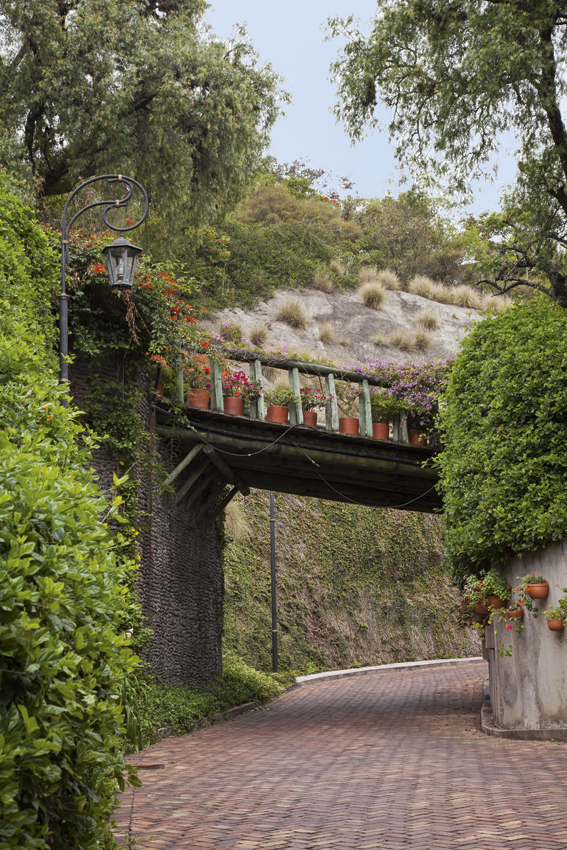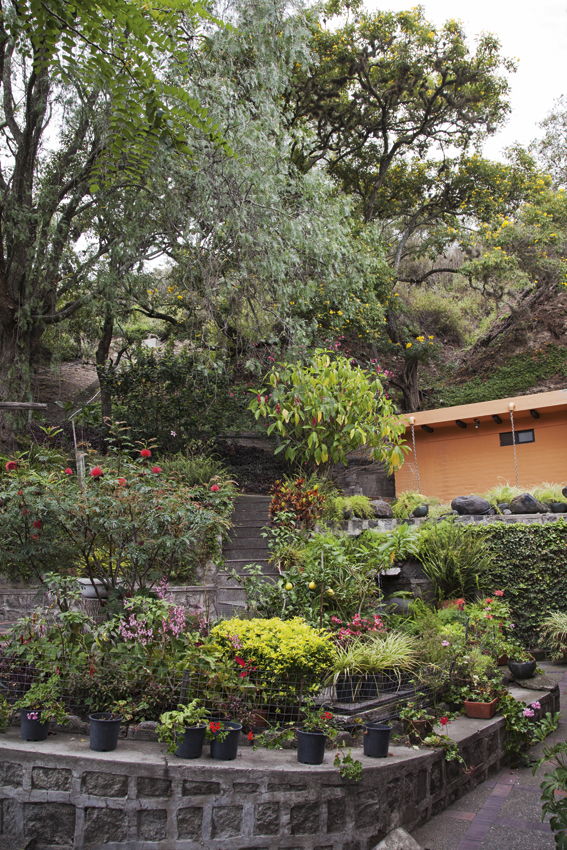 “Mi vida había transcurrido en Quito, pero mi esposo quiso que viniéramos acá para estar cerca de sus padres que ya estaban mayores. Siempre me gustaron las laderas. En Quito era imposible lograr esta cascada de árboles que se forma en un lugar con estas pendientes, aquí la vegetación luce más”. Y es así cómo Susana nos comenta los inicios de su vida en este pequeño paraíso emplazado a minutos de las comodidades de la gran ciudad, y cómo, pese a haber podido situar su casa en la planicie, su preferencia sin trastabilleos fue en la loma en la que tiempo atrás solían hacer pic-nics con su familia. “Yo ya planificaba cómo quedaría esto, viví en una hacienda en Salcedo. Me gustaban mucho los molles y las enredaderas. No pensaba tanto en las flores. También en mis viajes me inspiré, en Roma por ejemplo”.