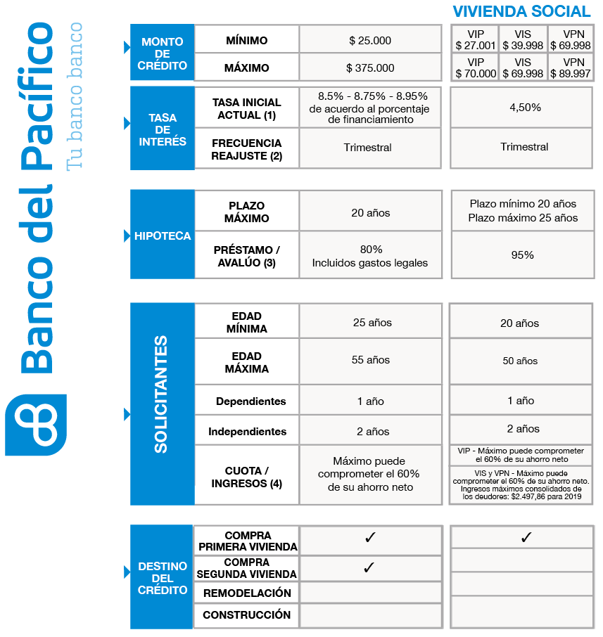 - La tasa de interés vigente a la fecha de publicación válida por los primeros 3 o 6 meses del préstamo conforme las normas de cada banco.