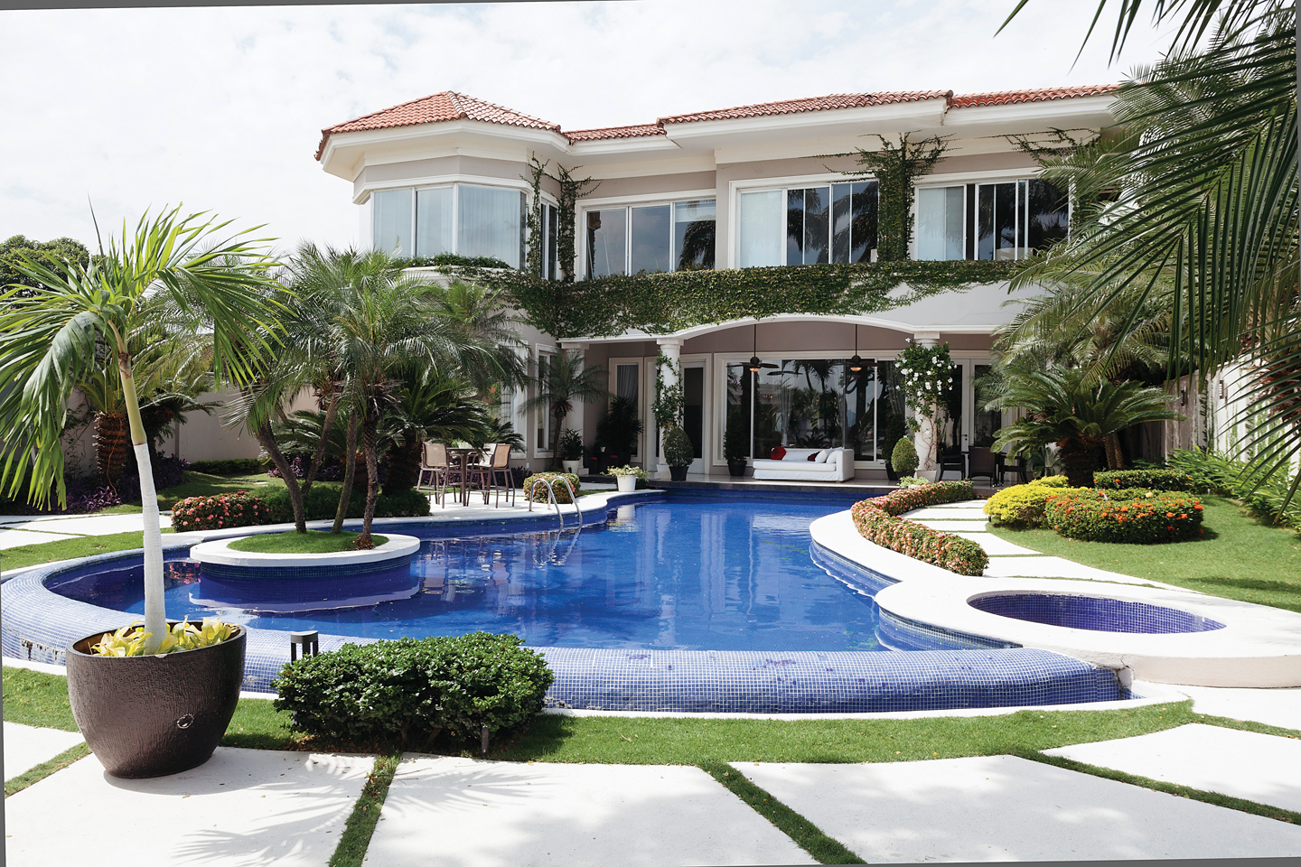 Un enorme árbol de samán permanece desde el inicio de la construcción de la casa. Fátima lo conserva con cariño y lo decora en ocasiones especiales con varios chandeliers. “En la planta alta tenemos un hall, la habitación máster, y cuatro habitaciones más: tres para mis hijos, Michelle, Antonie y Samir; y una para huéspedes, todas con vista al río. Además, el cuarto de TV ”.