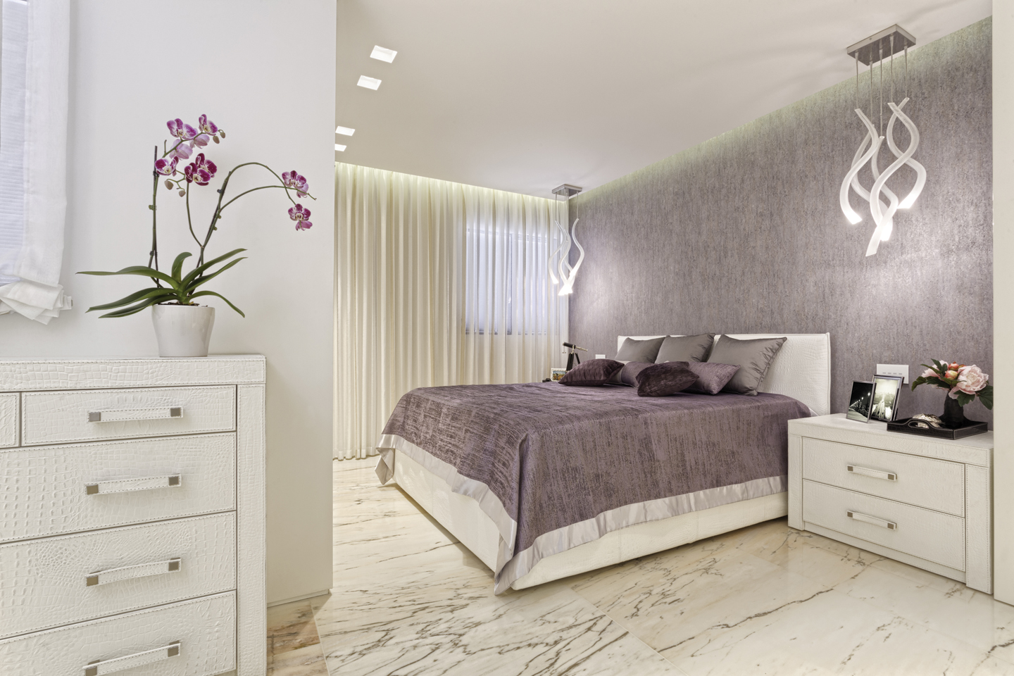 En cuanto a los espejos, debemos cerciorarnos de que no apunten directamente hacia la cama para que no perturben el sueño ni transmitan inseguridad. Es preferible no colocar lámparas grandes en el techo, y en su lugar utilizar lámparas en los veladores. Resultan muy útiles y dan un toque refinado a la pieza.