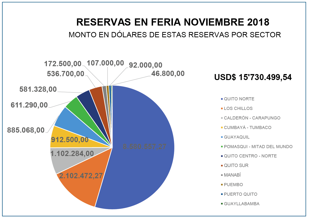 En el Gráfico No. 4 se desglosan las 165 unidades reservadas según su ubicación. Sumados sus valores, el total de negociaciones cerradas en la Feria de noviembre 2018 fue de $15.730.499,54, que superan en algo a los $13.627.995 registrados en abril del mismo año.