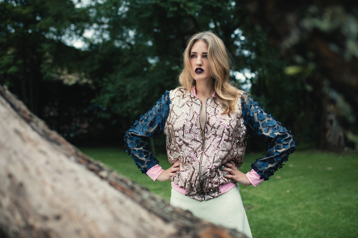 Chaqueta Bomber de lentejuelas y mangas floreadas